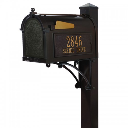 Black Capital Superior Mailbox/Square Post Combo with Custom address plaques on both sides of mailbox.